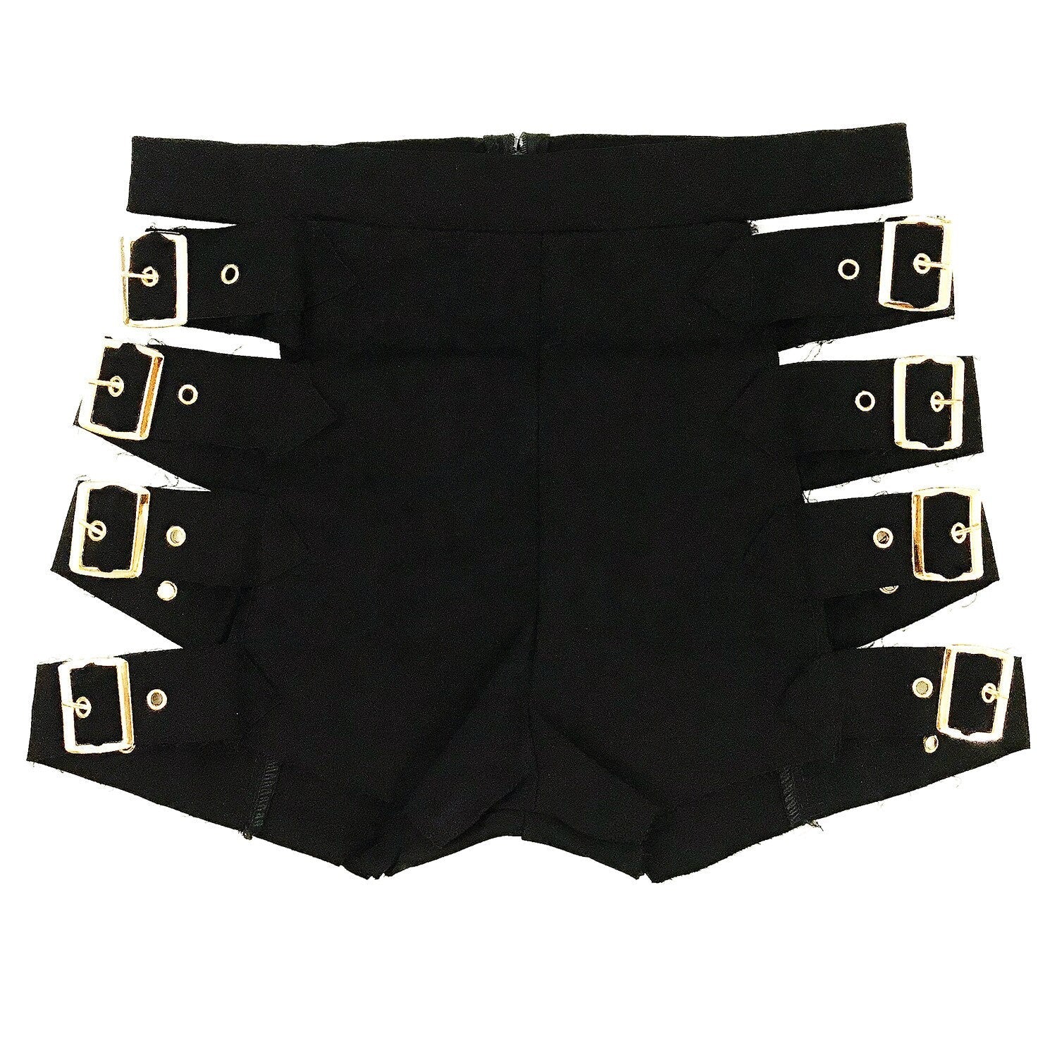 'Angel of Death' Black Sexy Goth Buckle Cut Out Shorts.