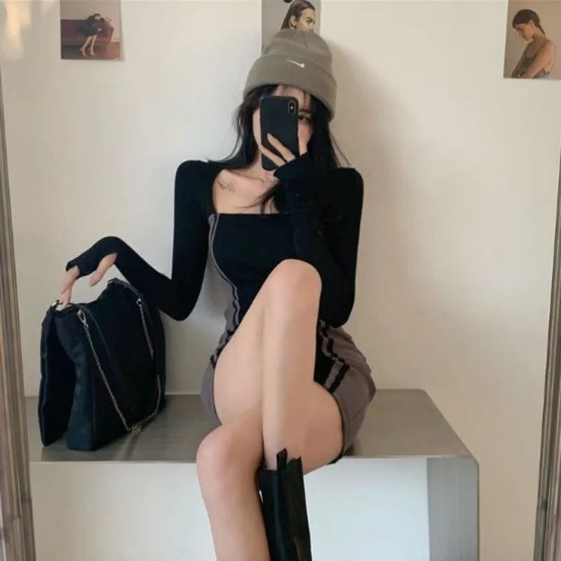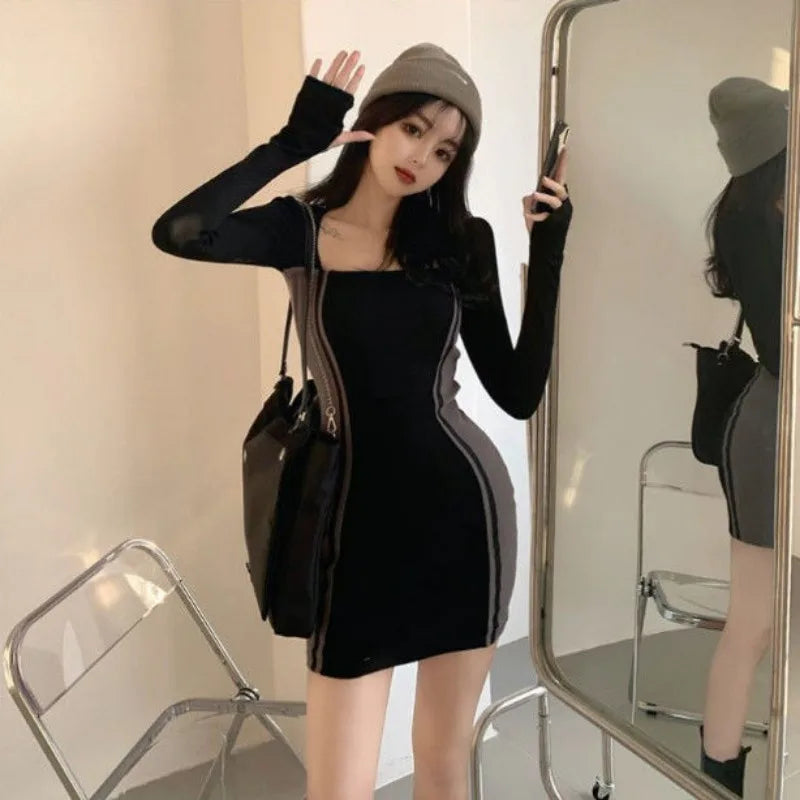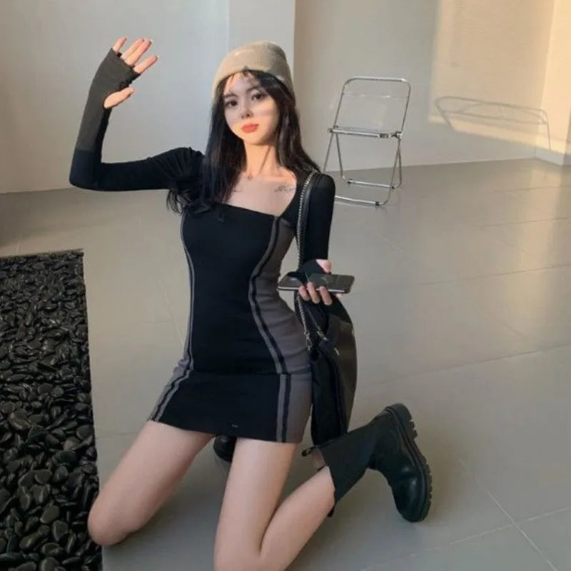 Expertly crafted and designed with a gothic twist. our 'Beneath' Striped Bodycon Long Sleeve Goth Dress is a must-have for any fashion-forward individual. The body-hugging fit accentuates your curves. while the long sleeves provide added coverage for a sleek and stylish look. Perfect for making a bold statement. this dress is sure to turn heads wherever you go.