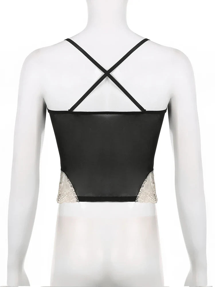This black lace cami crop top adds a touch of bewitching charm to any outfit. Its delicate lace detailing and cropped design create a stylish yet subtle look. Made with high-quality materials. it provides both comfort and elegance. Perfect for a night out or a casual day out. this top is a must-have in any wardrobe.