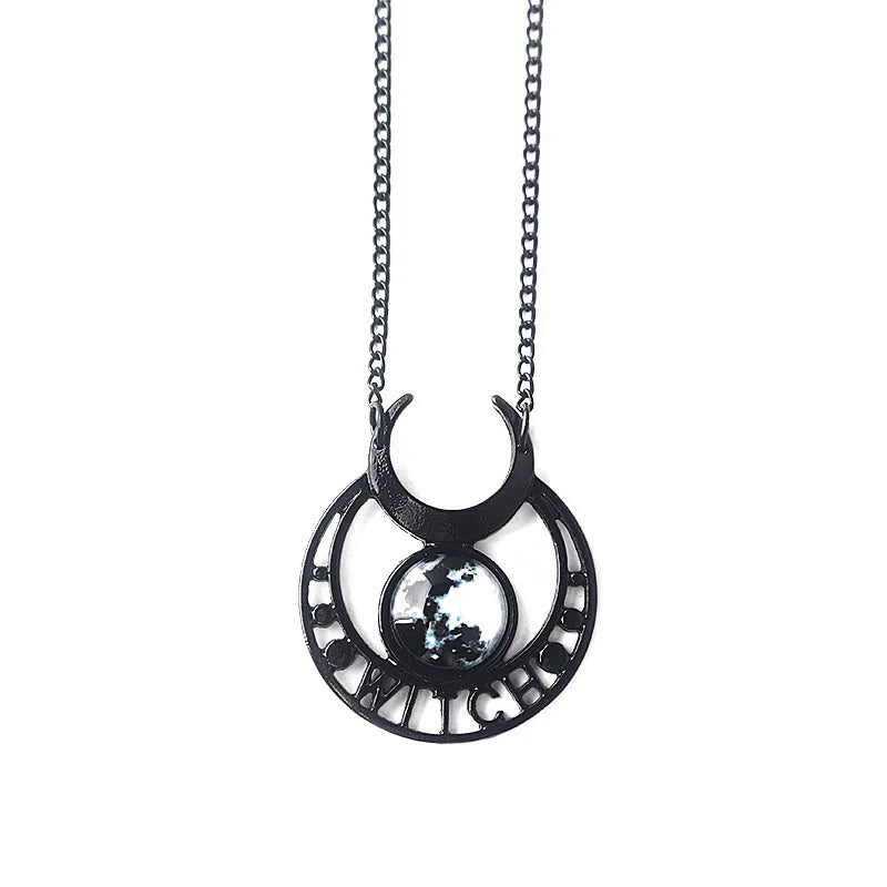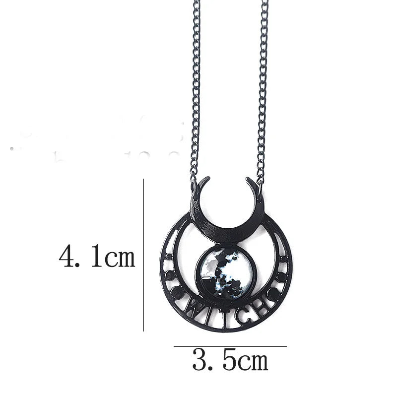 Enhance your gothic style with the 'Binx' Black Gothic Witch Moon Necklace. Made with a sleek black design and a striking witch moon pendant. this necklace will add an edgy touch to any outfit. Perfect for witches. moon lovers. and fashion enthusiasts alike.