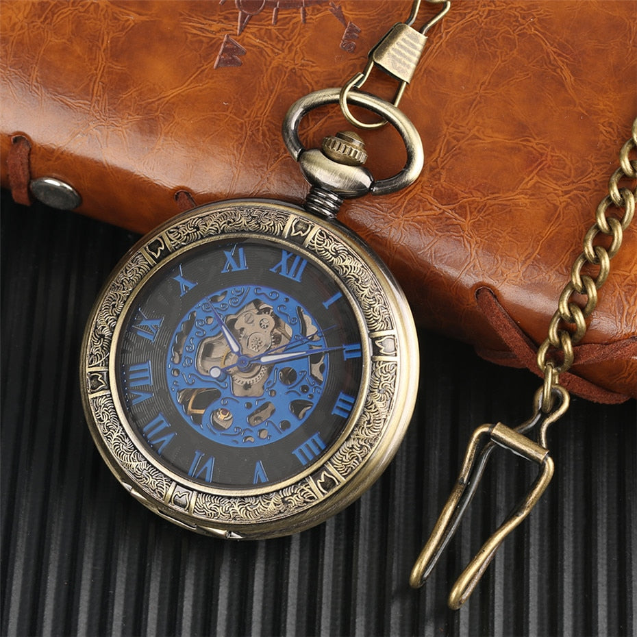 The blue color highlights the mechanism of this Steampunk pocketwatch.