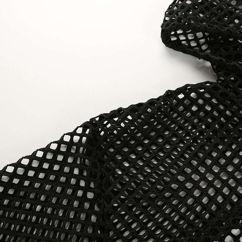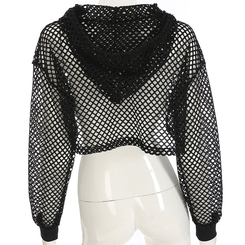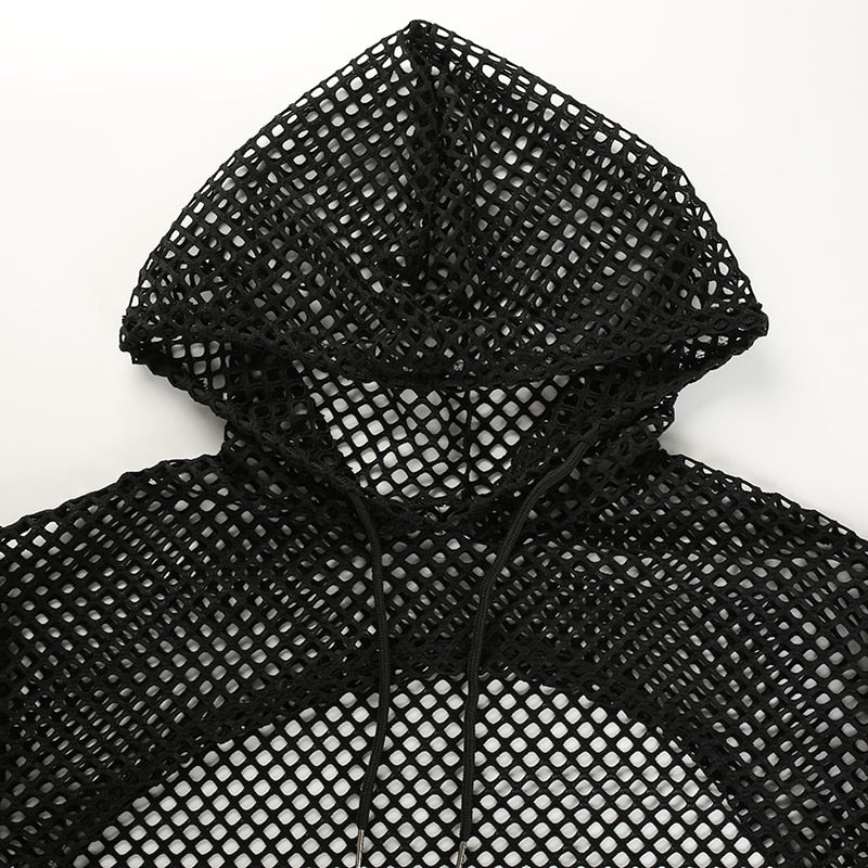 This 'Broke Down' Black Mesh Grunge Hooded Fishnet Crop Top brings edgy style to your wardrobe. Its unique design features a hood. a mesh grung layer. and a fishnet crop top layer. Crafted from a durable material. it's sure to upgrade your look with every wear.