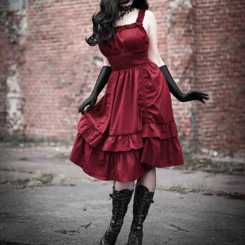 The dress is available in three colors. Red will accentuate a seductive and pin-up look. black will give you a mysterious. or gothic look depending on the accessories. Finally. brown will be an excellent base if you want to make a Steampunk outfit without mistakes. As for the accessories. you can be inspired by your models in pictures and add long gloves for a "femme fatale" effect! For the jewelry. we recommend a beautiful black lace necklace. and to finish. leather boots with heels.