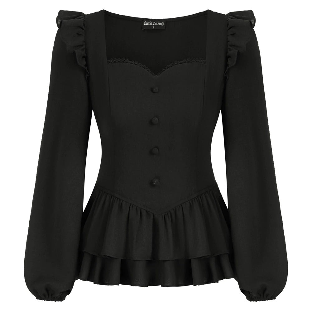 This elegant and vintage black blouse is to be worn with a corset with more "flashy" colors to create a contrast in your steampunk look and stand out from the crowd. However. if you want a dark character. a "100% dark" outfit will be more appropriate and this black shirt will fit perfectly.
