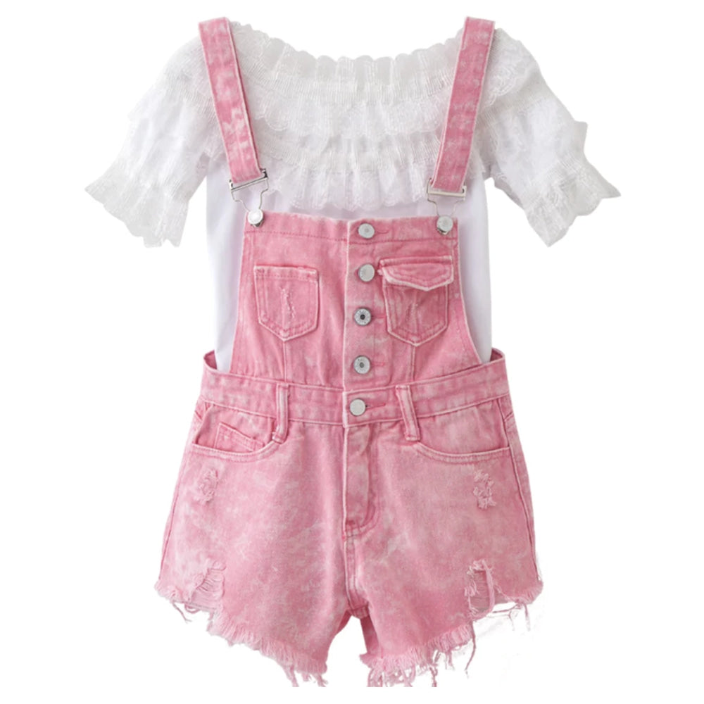 • A sweet pair of distressed jean acid wash dungarees that are ready to play.