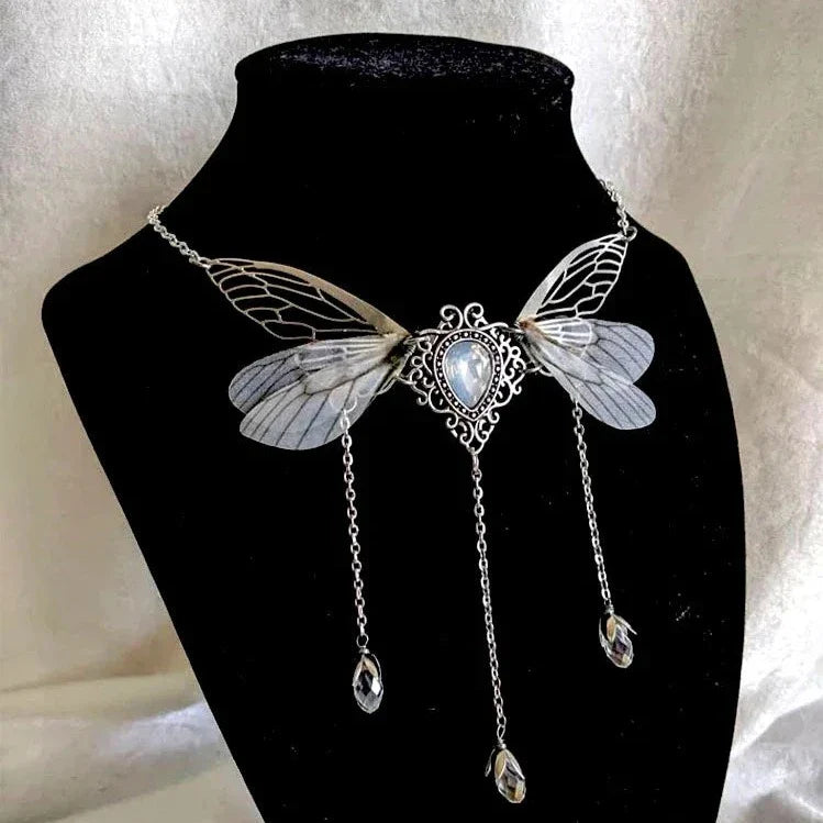 Transport yourself to a realm of whimsy and wonder with our fairy necklace. Crafted in the likeness of a magical butterfly. adorned with a sparkling gem at its center. this delicate necklace is the epitome of ethereal charm. Whether you're adding a touch of whimsy to your everyday look or completing a fantastical cosplay ensemble. our fairy necklace is the perfect accessory to showcase your enchanting style.