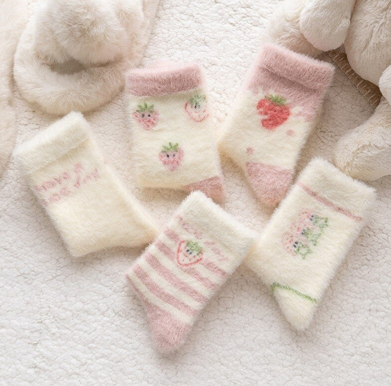 • et ready to keep your feet warm and stylish all day long with our Fuzzy Strawberry Socks!