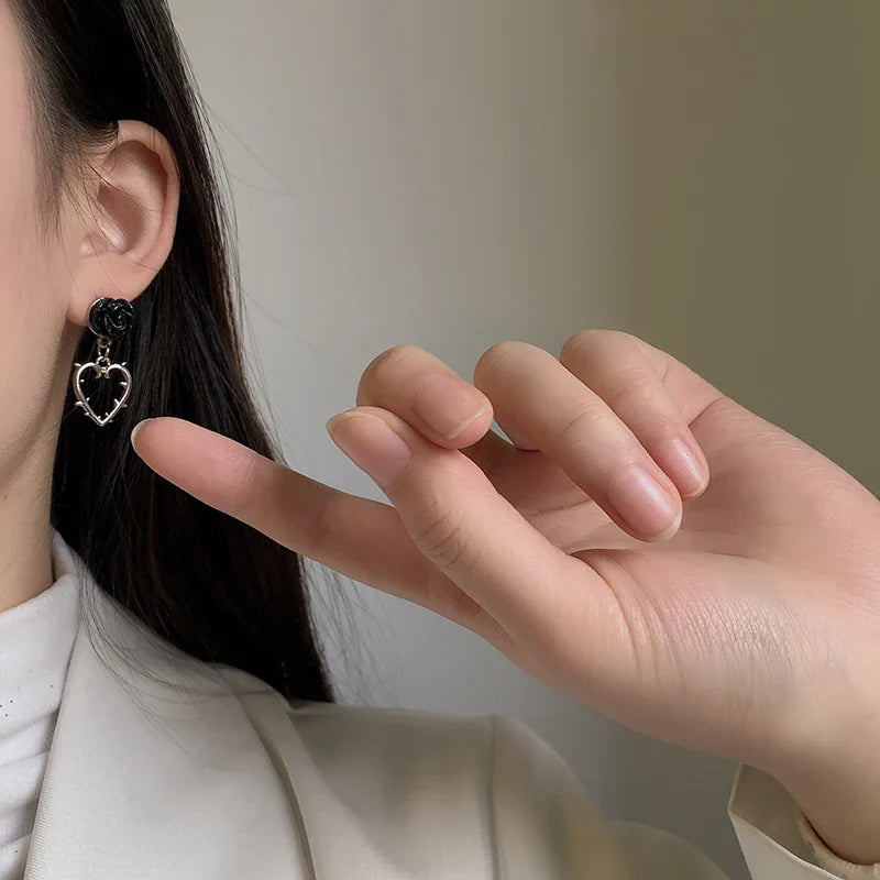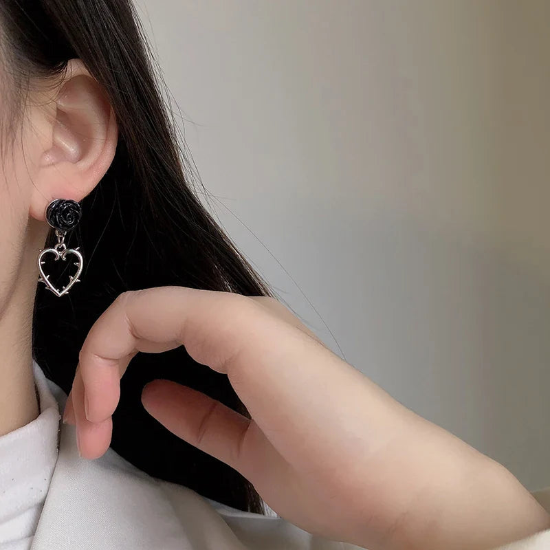 Complete your gothic look with these elegant Gothic Dark Black Rose Dangle Earrings. The dark black roses give off a mysterious and alluring vibe while the dangle design adds a touch of sophistication. Perfect for adding a touch of dark beauty to any outfit.