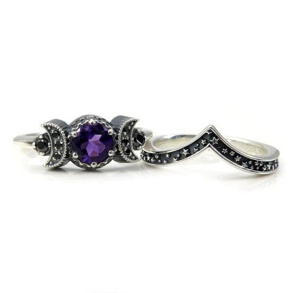 Unleash your dark side with our Gothic Triple Silver Multi Color Amethyst Ring. The intricate design and multi-color amethyst stones make this ring a true statement piece. perfect for adding a touch of mystique to any outfit. Embrace your inner rebel and add this unique ring to your collection.