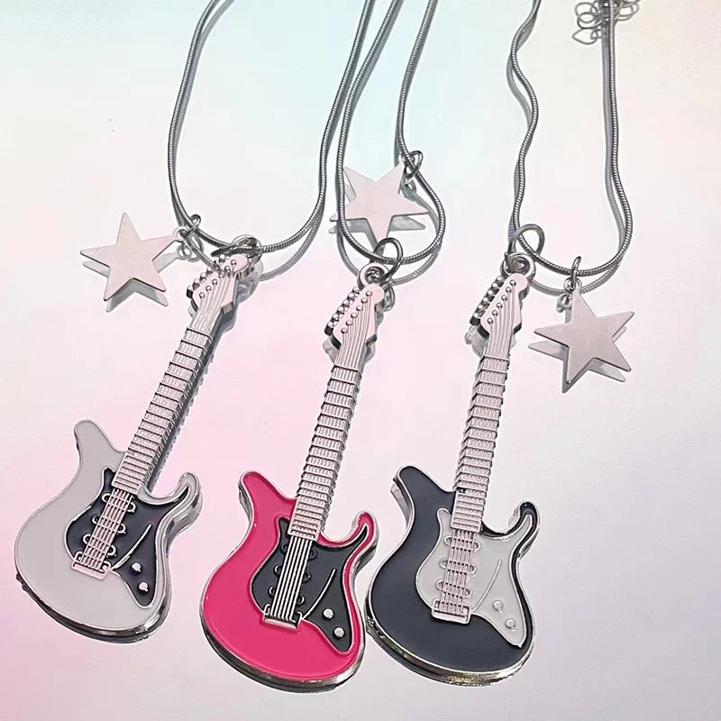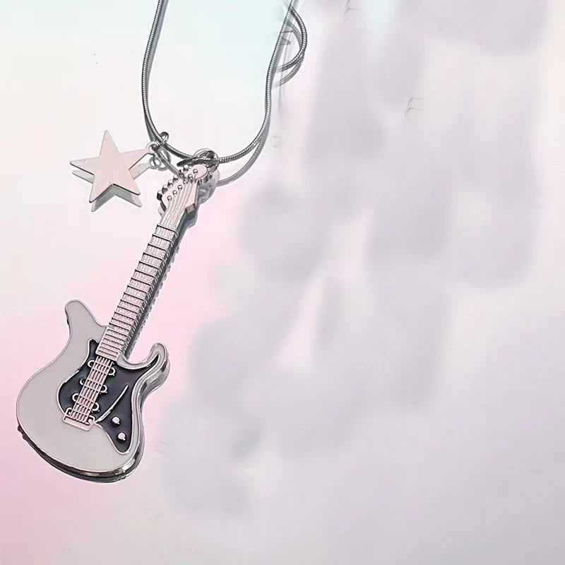 This gothic-inspired Grunge Guitar Pendant Necklace is perfect for music lovers. Made with high-quality materials. this edgy necklace features a detailed guitar pendant that adds a touch of rebellious charm to any outfit. Show off your love for music while looking stylish and unique with this statement piece.