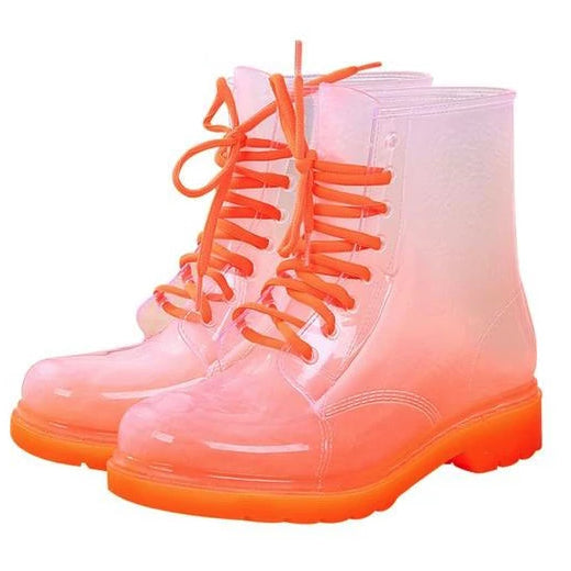• A gorgeous pair of block heeled ombre style rain booties perfect for splashing in. while being super kawaii!