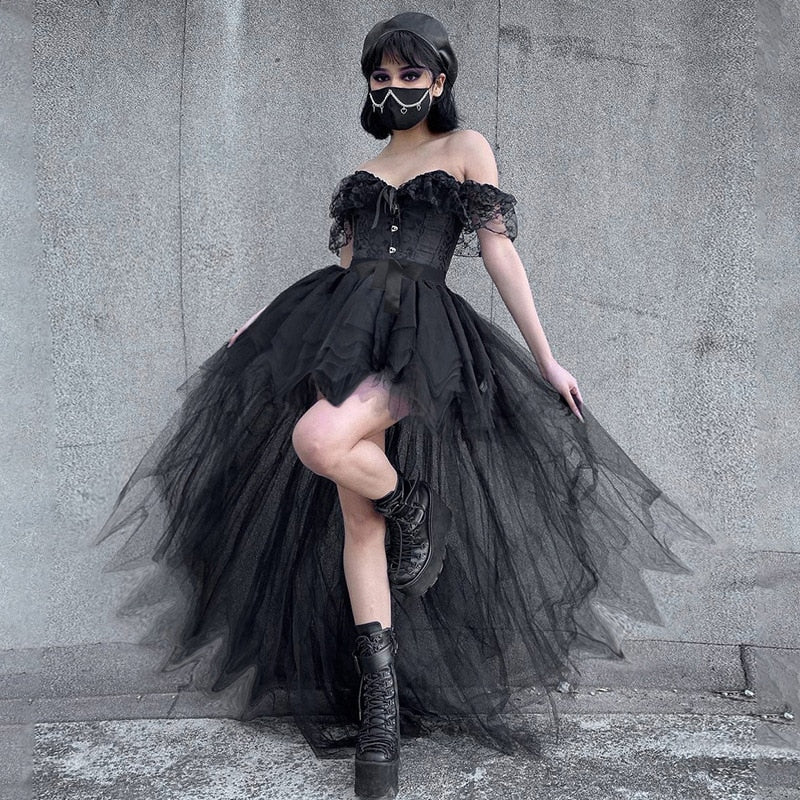 The skirt features a high waistline and a unique high-low hemline. giving it a modern twist on a classic look. The voluminous design creates a beautiful silhouette that will make you stand out from the crowd. Plus. the added bonus of a train in the back adds an extra touch of drama to your ensemble.