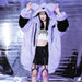 The “Jumbo Fluffy Pastel Goth Oversized Jacketâ€?is an ultra-cuddly. oversized masterpiece that will keep you cozy while channeling ultimate kawaii aesthetic vibes. This purple jacket features extra-large ears on the hood. adding a fun and mischievous look. perfect for lounging or casual streetwear. The jacket's soft faux fur exterior and generous fit ensure maximum comfort. with enough room for layering.