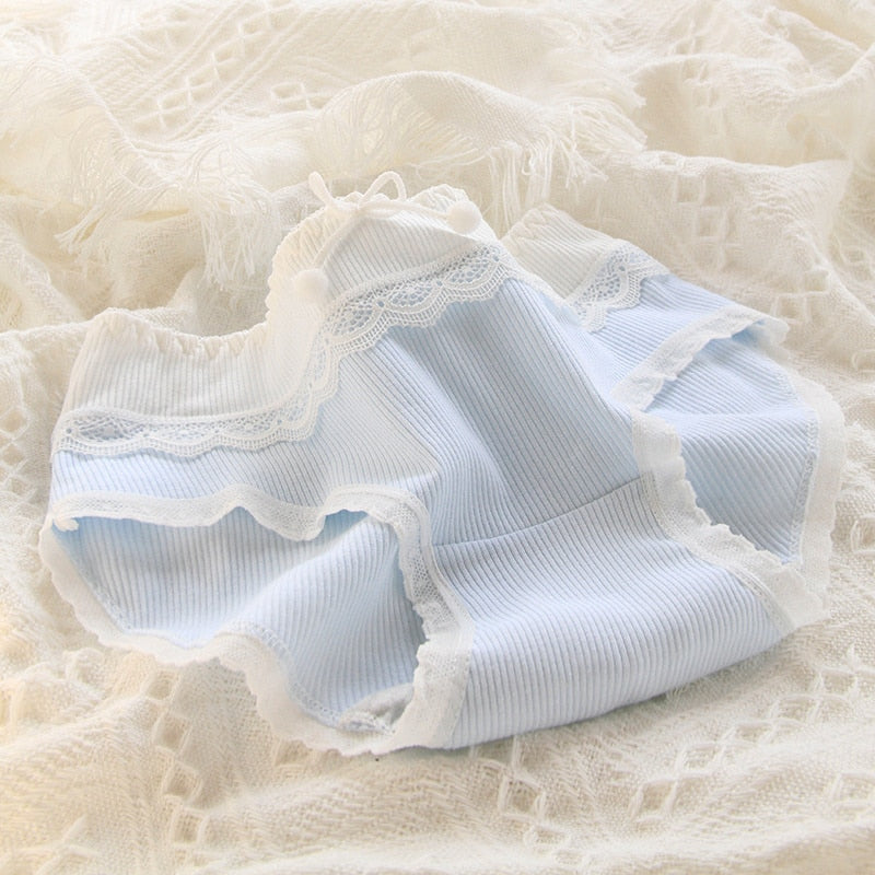 Indulge in cuteness with these Blue Lace Cotton Sweetheart Undies! Perfect for fans of youthful kawaii fashion. these adorable undies are designed to combine comfort and style effortlessly.