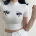 • This delightful bright white soft knit crop top features two beautifully detailed teary-eyed anima eyes hand-embroidered on the chest! So kawaii.