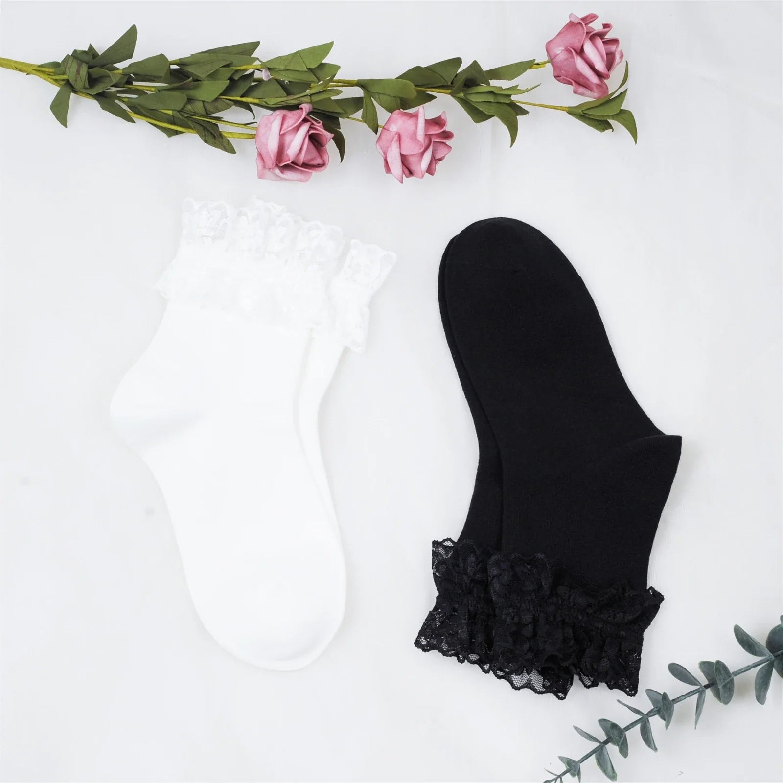 Unleash your cuteness with our Lolita Kawaii Lace Ruffle Frilly Ankle Socks. Adorned with delicate lace and flirty ruffles. these socks add a touch of charm to any outfit. Perfect for kawaii fashion lovers. these socks are both stylish and comfortable.
