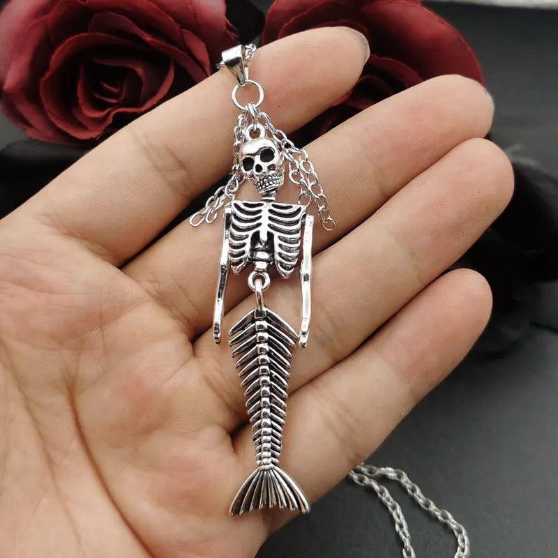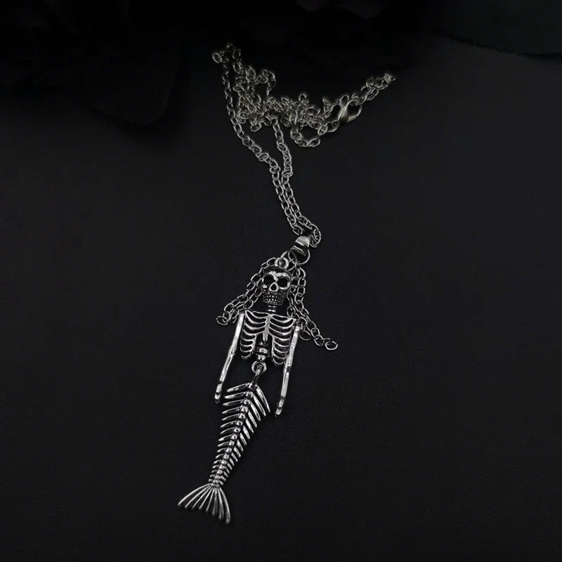 This necklace features a unique design inspired by mermaid skeletons. Made with high-quality materials. it offers a one-of-a-kind aesthetic that will add a touch of fantasy to any outfit. Expertly crafted. it is a must-have for mermaid enthusiasts and those looking for a conversation starter.