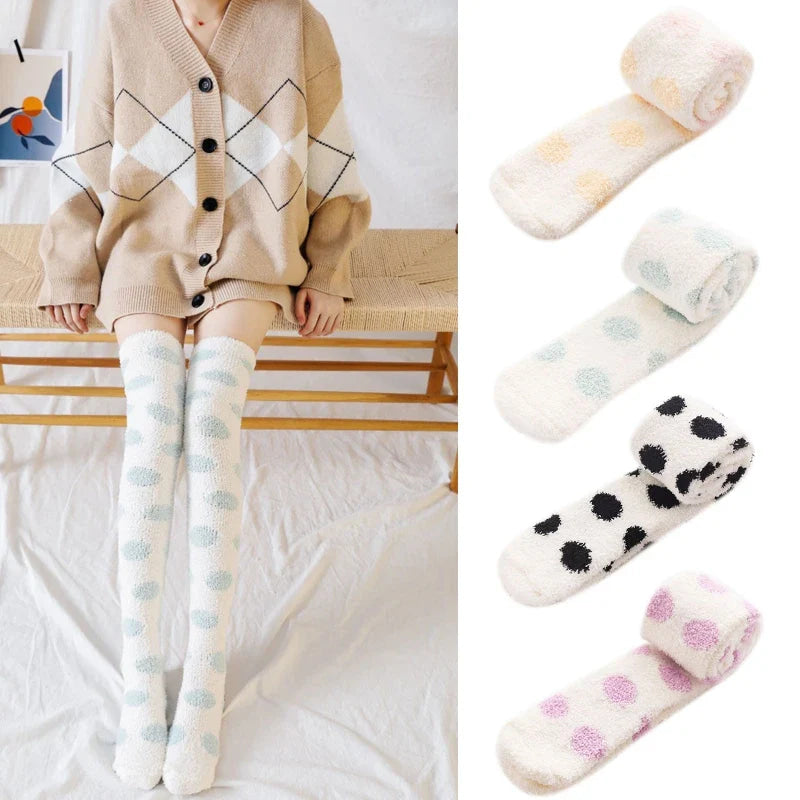 • Every kawaii wardrobe simply needs a pair of these adorable plush spotted over the knee socks. They will instantly put you into a happy little space. and keep you so comfy and warm!