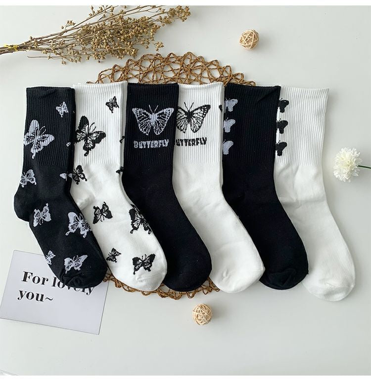 🦋🧦 Black & White Butterfly Socks: Kawaii Comfort for Your Feet 🧦🦋