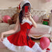 • A Christmas miracle. complete with a sweetmatching christmashat and shawl. withvelvety soft fabric. corsetry. and a flowing skirt.