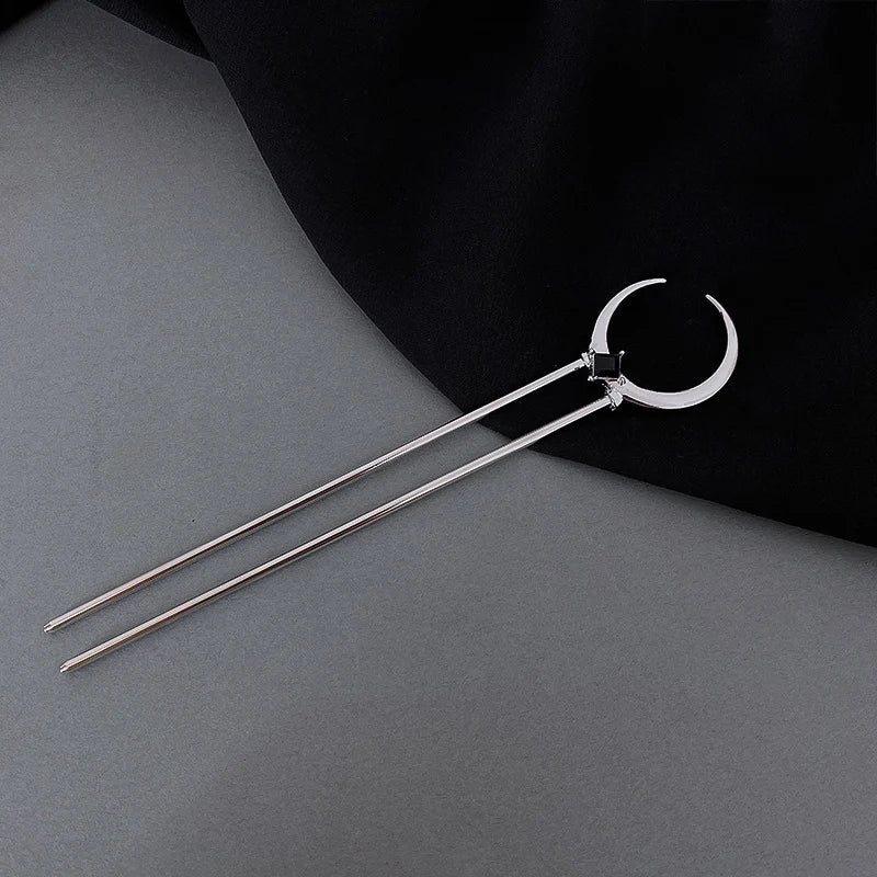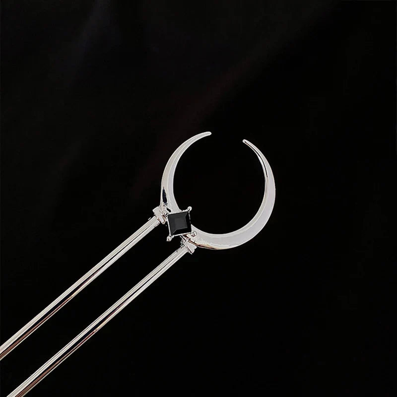 This gothic-inspired Silver Moon Metal Hair Pin is a must-have for any haunted updo. Made with strong metal. it will keep your hair in place all night long. The elegant silver moon design adds a touch of dark elegance to any hairstyle. making it perfect for gothic events or any special occasion.