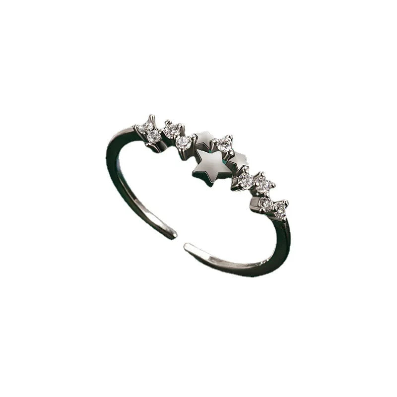Channel the dark and elegant vibes with our Silver Zircon Star Ring. This stunning piece features a striking silver band. adorned with a sparkling zircon star. A gothic twist on a classic accessory. perfect for adding a touch of mystery and allure to any outfit.