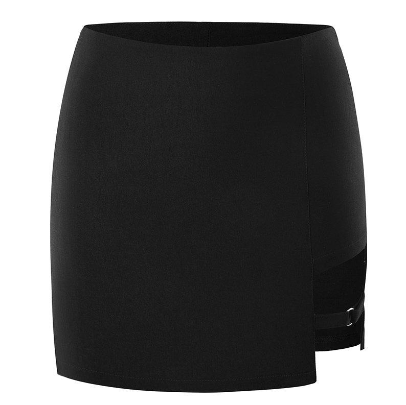 Be a stunning siren in this black mini skirt with cut out section to the leg with an O-ring. Available in sizes Medium and Large. See sizing below: