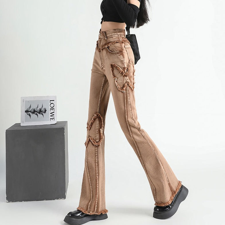 Made with high-quality materials and exquisite attention to detail. these pants are the perfect addition to any steampunk or alternative fashion enthusiast's collection. Crafted with a delicate butterfly pattern in a rich. earthy color scheme. these pants feature a flattering. form-fitting cut that is both comfortable and stylish. The high-waisted design is perfect for pairing with a corset or other steampunk-inspired top.