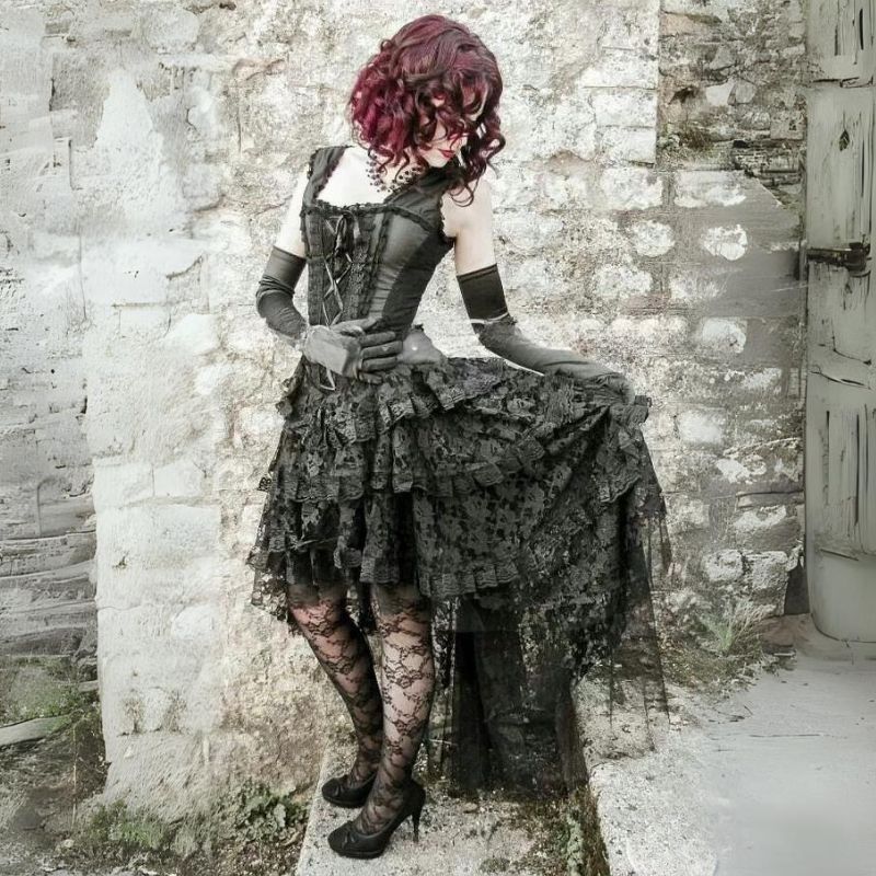 Be the most elegant in our Steampunk cocktail dress! This high-quality dress is made of satin and lace with a 100% fine cotton twill lining. It also features four flat steel bones and four plastic bones for good posture. You can put it on easily with the back zipper. If you want to shape your figure to perfection. the dress has a lace-up on the back to cinch it in. The mild-sweetheart bust adds a sexy touch to the piece. Whether it's for a party or a special event. be sure to look phenomenal in this gorgeous dress.