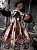 • Thisgothic dress has so many gorgeous details from ruffled trim. adorable collars. buttons. andgirly bows. which perfectly accent the gothic & horror inspired print all over!