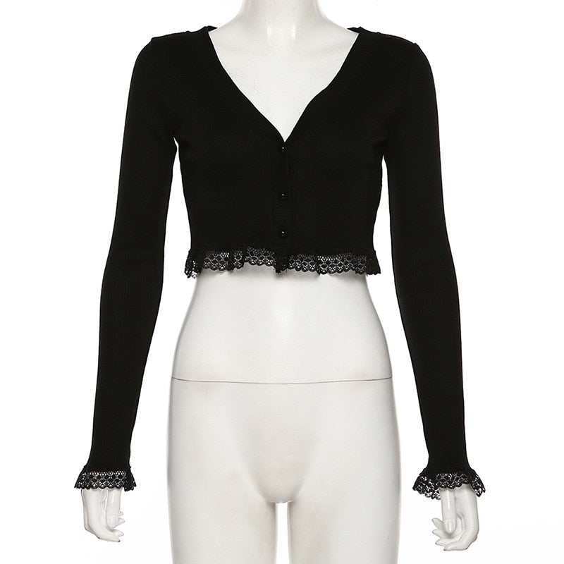 Black Alt Knitted Cardigan Top - Affordable & Trending- Best Selection of Gothic. Atl & Grunge Clothing & Accesories!