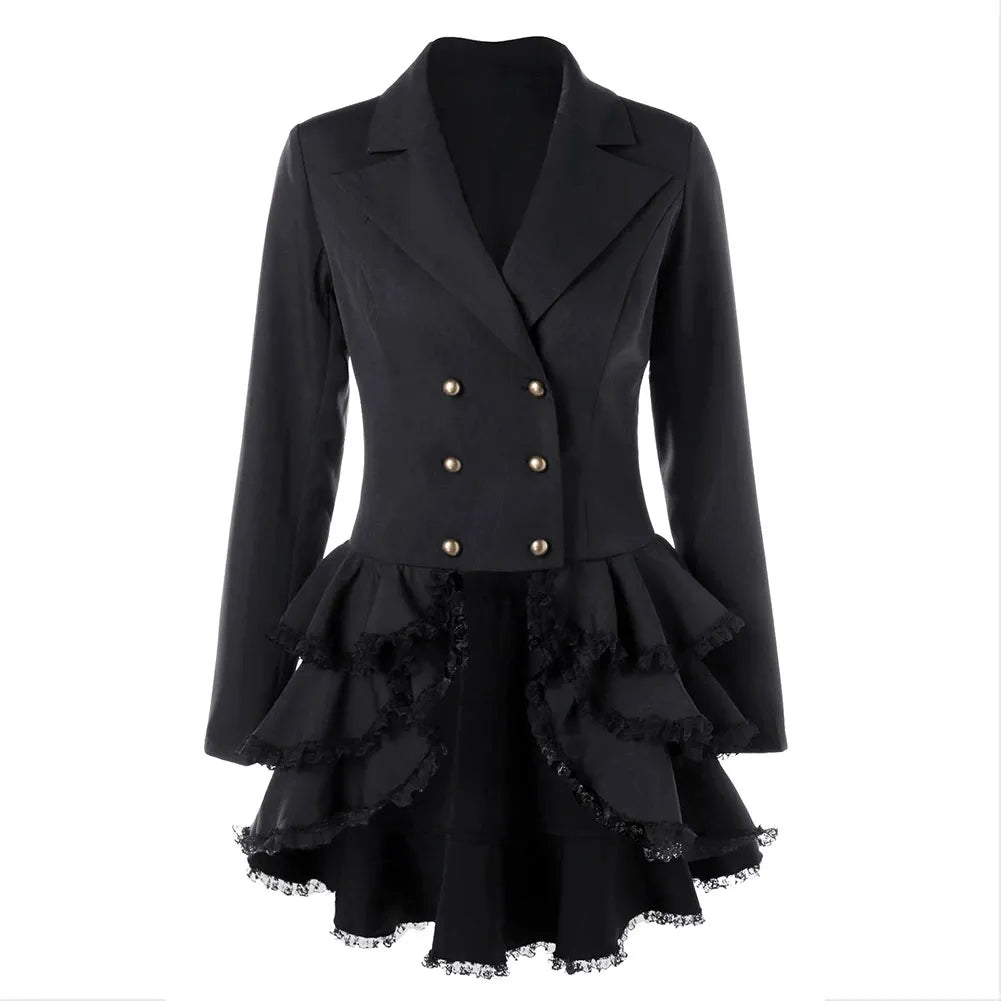 Indulge in the exquisite charm of the Victorian era with our stunning Victorian Style Jacket designed for women. Crafted in black. this jacket exudes sophistication and grace at every turn. Adorned with delicate lace-up detailing at the back. it adds a touch of vintage allure to your ensemble. Whether you're strolling through the gaslit streets of a steampunk metropolis or attending a grand ball. this jacket promises to elevate your style with its timeless elegance!
