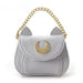 • A stunning. intricately detailed. gorgeously craftedmagical girl handbag in a stunning shade of white and a beautiful cat print on the interior.