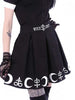 • An incredible gothic inspired "Witch Craft" pleated skirt with a gorgeous pentagram and moon pattern along the bottom and the words "Witch Craft" along the waist.