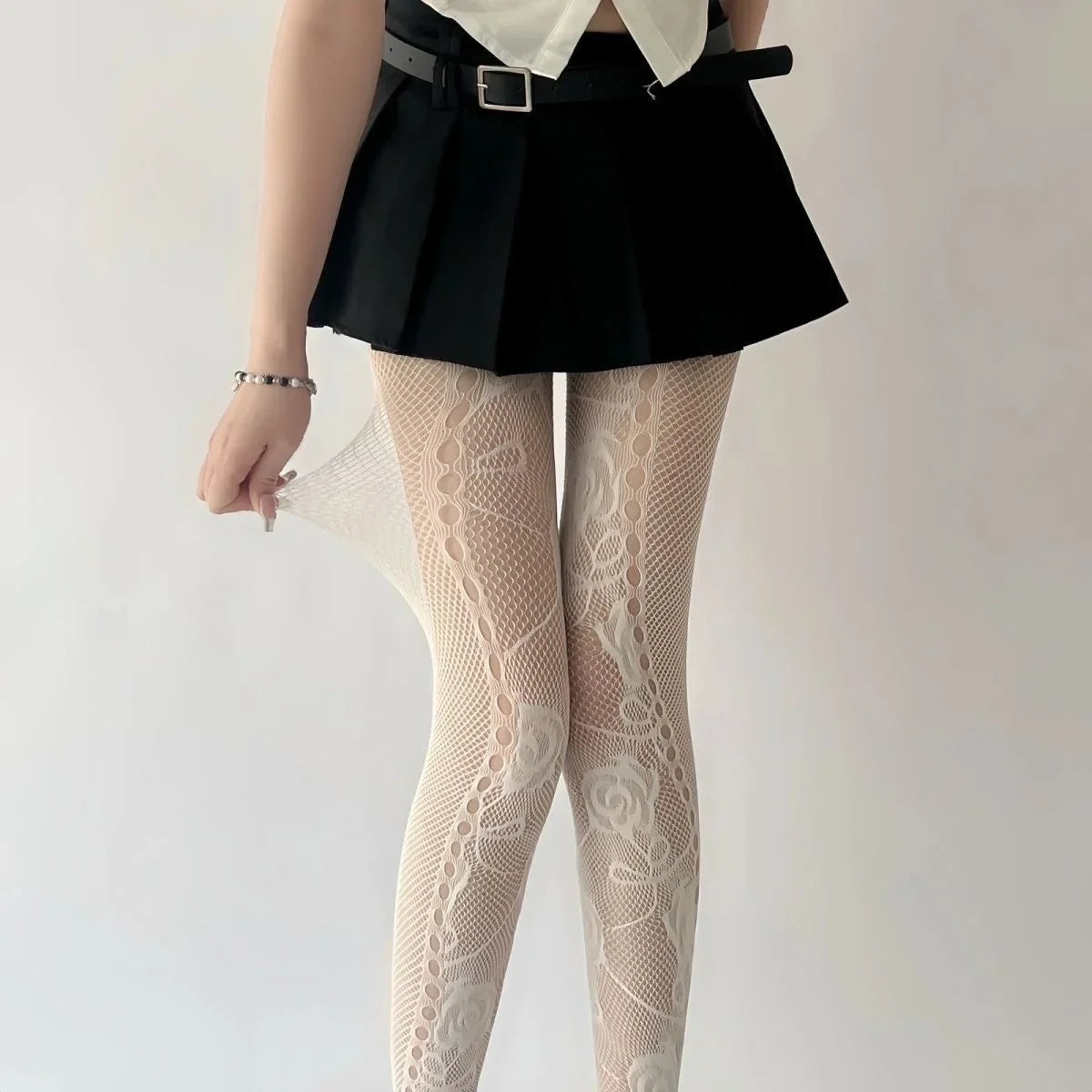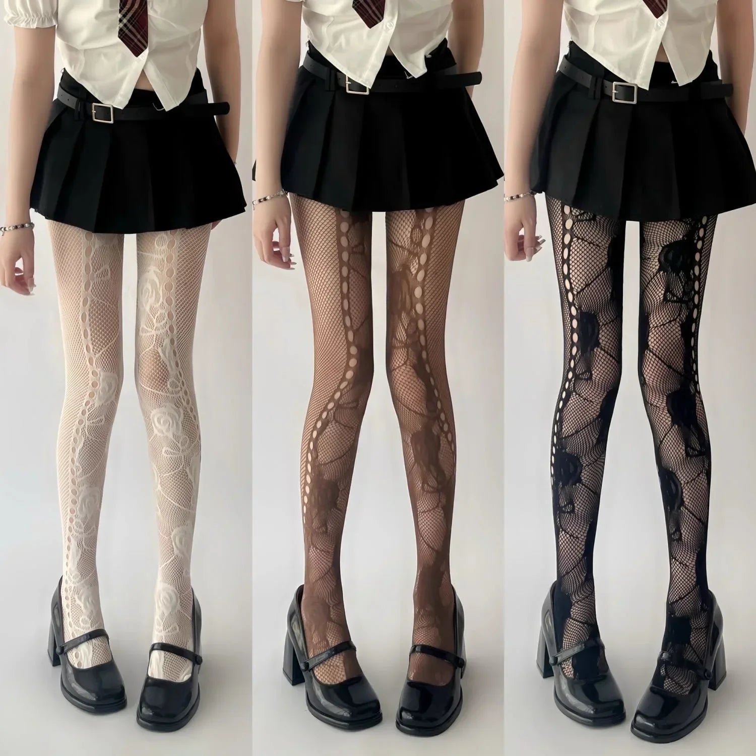 Embrace edgy elegance with these Y2K Floral Sexy Fishnet Stockings. Featuring a bold floral pattern woven into classic fishnet. they add a darkly romantic touch to any outfit. Perfect for layering under ripped denim or pairing with gothic skirts. these stockings blend vintage Y2K vibes with modern rebellious style. Elevate your look with a hint of provocative allure and intricate detail.