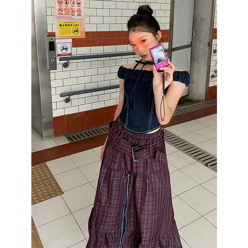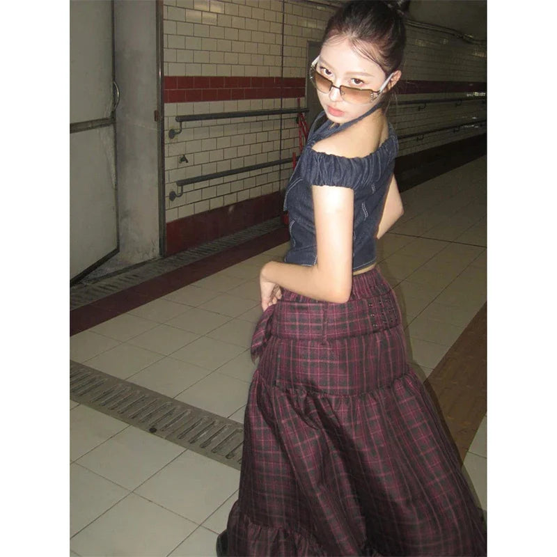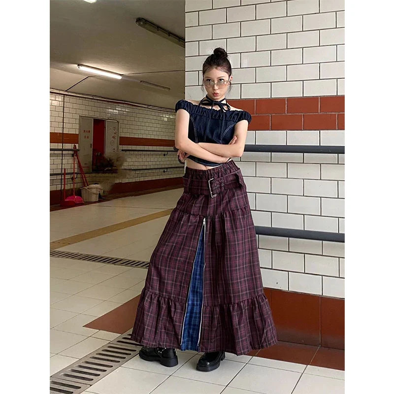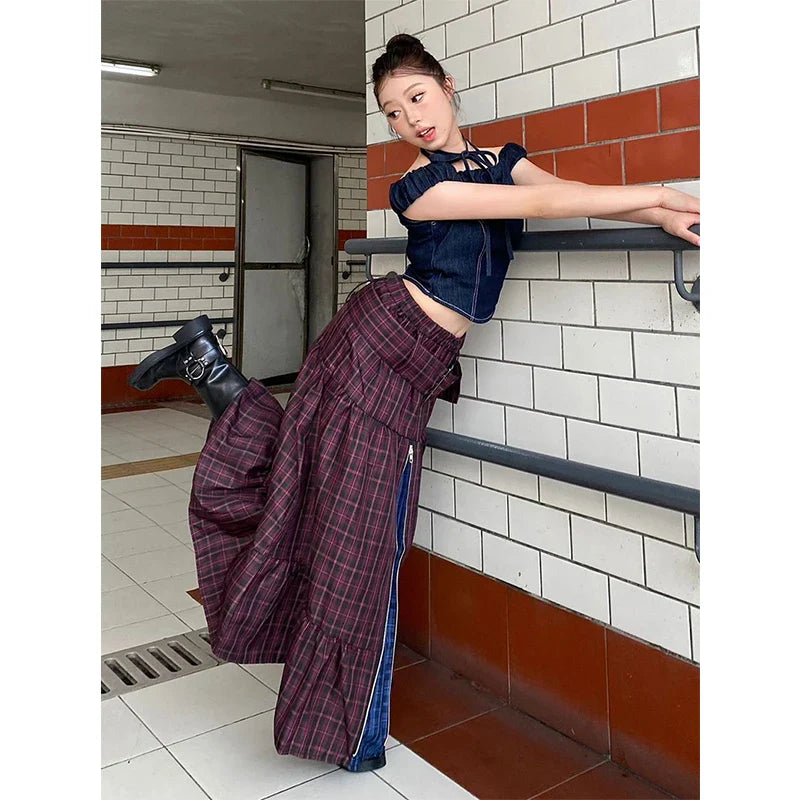 A mix of colours and textures into one comfy piece. This skirt features a flowy maxi length with a patchwork plaid design that gives it a vintage look. The added zipper detail and layered panels make it look interesting without being too bold. so it still works well with all kinds of outfits.