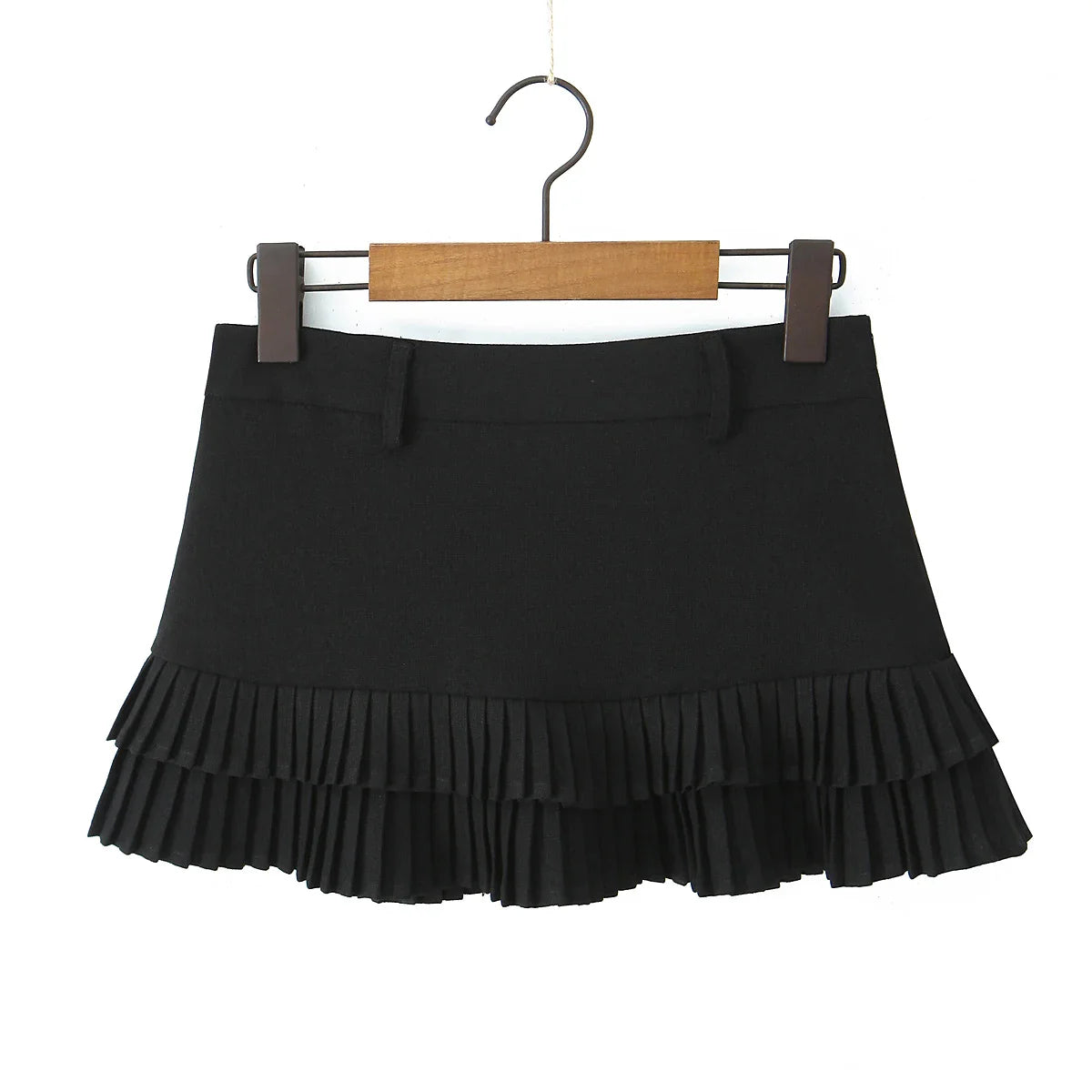 The cutest mix of playful and simple. This mini skirt is all about the details with its soft pleats and short length. giving off proper Y2K energy. It's got a smooth shape and fun feel. but it's also chill enough to match with so many outfits. Perfect for when you want something a bit different that still feels low-key.