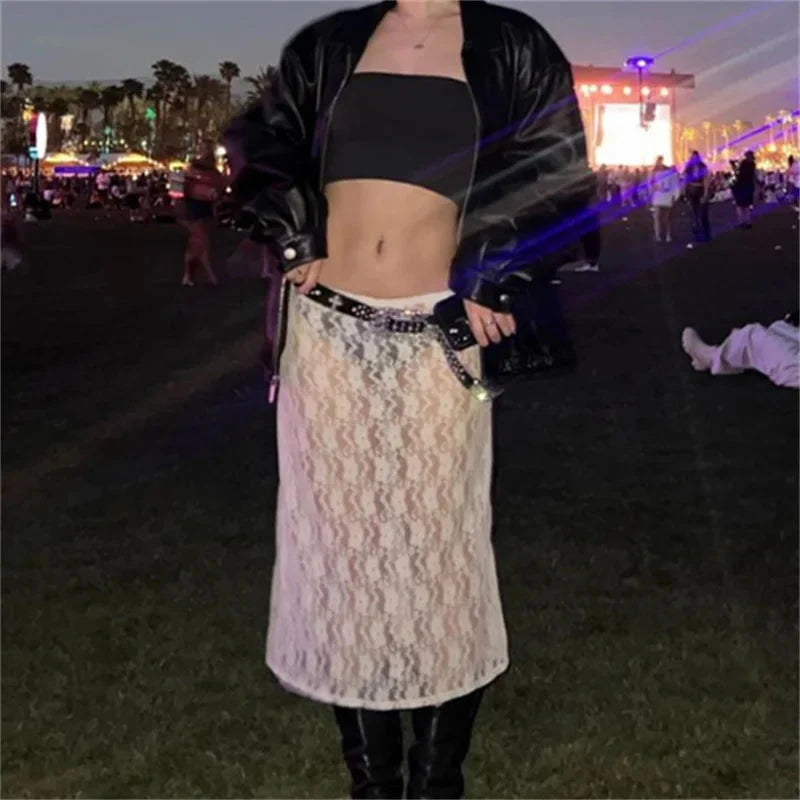 This women's knee-length skirt. featuring a soft. flowy fabric and a striking white hue. is the perfect choice for those who want to embrace the fairy grunge aesthetic. The airy design is ideal for warm summer days.